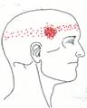 - Primary: The pain refers to the temple region with a spillover above the eye which encircles the lateral aspect of the head; Occipital and neck region.